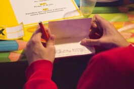 Ningún alumno o alumna de los presentes va en bici a la escuela. Entre los adultos, se explica la experiencia del uso de la bici en Dénia, un miembro de una entidad ciclista, que utiliza la bici siempre que puede. Transmite las carencias que tiene la infraestructura ciclista, pero también anima a mayores y a infantes a utilizar la bici en los desplazamientos en el municipio.